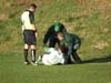 Bari hamar észrevette azt is, hogy mindkét csapatot faipari cég támogatja, de a szponzor által legyártott „falábakkal” való viccelődés szerencsére alaptalan volt, mert ügyesen tették-vették a fiúk a labdát. Bár több hazai helyzet is kialakult, sőt kapufa és ziccer is adódott, a vendégcsapat többet birtokolta a labdát, így egy kavarodás után megszerzett szerencsés góljuk voltaképpen jogosnak mondható. Ekkor szakadt el a cérna a körülöttem levő hazai szurkolóknál, akik, ki tudja miért, innentől az általuk vélhetően jól ismert tinnyei származású partjelzőben látták minden keservük okát. Szegény „Pali” volt krokodil, köcsögduda, csak éppen jóember nem. A végeláthatatlan szitkozódás indokolatlan és meglepő volt, különösen egy amolyan kedves bácsika kinézetű öregúr járt élen a válogatott szidalmakban, visszatérő fordulata volt, hogy „téged nem fog eltemetni a presbiter”. Szünetig nem sikerült a csabaiaknak egyenlíteni, de a meccs hajtós maradt, legfeljebb az okozott szüneteket, amikor egy-egy erősebb lövés után a labda legurult a közeli temetőbe. Érdekes pályahiba volt, hogy néhány göröngy mellett, talán valami vezeték-munkálat miatt, de több árokszerű csík is végigment a pályán, amelyeken bizony jókorákat módosult a labda mozgása.