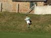 Bár biztos, ami biztos felvérteztem magam a busz és a vasút menetrendjével is, de végül két autóval is érkeztek megyeszurkolók, magam Barival és Henivel már jóval a kezdés előtt befutottunk. Remek, napos, őszi idő volt, a büfénél kezdtünk, majd a helyi törzsszurkolók körében foglaltunk pozíciót. Kicsit kevesebben voltak a meccsen, mint azt előzetesen reméltem, de azért a Pilisszentivánnak volt egy rendkívül lelkes ötfős kemény magja, hangszerekkel, lelkes buzdítással, és úgy 8 éves átlagéletkorral. A kisebb nézőtéri zsúfoltságnak annyi haszna azonnal lett, hogy már az első két-három támadásnál két ízben is labdába avatkozhattam, előbb a büfé-épületről visszapattanó labdát, egyből, egy elegáns ballábas sarkazással passzoltam a beadáshoz érkező játékosnak, majd Barit is játékba hozva egy szintén kapásból visszalőtt labdával vétettem észre magamat. Az értékes sport-teljesítmény után büszkén kihúztam magamat és folytattam a szemlélődést, Bari pedig ismételten elcsodálkozott a labdába érési képességemen, és azt már-már földöntúli tulajdonságként írta le. A vallási élményen azért hamar túlesett, és egy diplomatikus Hajrá Pilis! üvöltéssel kapcsolódott be a meccsbe.