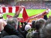 Első este mászkáltunk a belvárosban, meglepődve tapasztaltuk, hogy a híres angol sörök ellenére a városban az ausztrál Foster a legelterjedtebb márka. Másnap, a turisztikai délelőttön, sikerült rendkívül körültekintően óvni a gyomromat. A full english breakfast-ből a hurkát, szalonnát, gombát és a rántottát vállaltuk nyitásként, és mivel a Liverpoolban beszélt poolish angolból általában az égvilágon semmit nem értettünk, utána is elég esetleges kajákat kaptunk, én például valami mézes joghurtitalba is beleszaladtam. Délután elindultunk a stadionba. Bár úgy tünt, hogy a nagy büdös semmi közepén lakunk, kiderült, hogy a szállodánk aljában és a mellettünk levő lepukkant épületben két kocsma és egy fogadóiroda is helyet kapott. A 3-2-es liverpooli győzelem fogadását hirdették a kirakatban. Ha jól emlékszem harmincszoros szorzóval, gondoltuk is, hogy megtesszük (utólag érdekes lett volna, hogy a kilencvenedik percben még azt hihettük volna, hogy zsebben a lé). Benyitottunk a város legigénytelenebb krimójába is, ahol néhány környékbéli alkoholista néni társaságában koccintottunk a Pool-győzelemre. Elbandukoltunk a stadionhoz, viszonylag korán odaértünk, így bementünk melegedni az Anfield Road rengeteg pub-jának egyikébe. Ezek vélhetően csak kéthetente meccsidőben vannak nyitva, de a szurkerek fogyasztását elnézve, ebből is remekül megélnek. Itt is sikerült olyan beszélgetésbe bocsátkozni, ahol egyetlen szót sem értettünk, de mosolyogtunk, és ha kérdés hangzott el, azt válaszoltuk, hogy Hungary. Hátha ez volt a kérdés. Faltunk egy kiváló hamburgert is, majd bevettünk magunkat a stadionba. Aki járt már az Anfield Roadon, tudhatja, hogy ez a világ egyik legjobb stadionja, a pálya mellett azonnal kezdődik a lelátó, semmi atlétika-pálya, vizesárok, vagy más baromság, hanem teljesen testközelből, de azért a gyorsan emelkedő lelátó miatt rálátással lehet követni az eseményeket. A Liverpool szurkolóiban pedig az a legjobb, hogy nemcsak a kemény mag, a Kop viselkedik ultraként, hanem az egész sereg egy ultimát B-közép, mindenhol sálak, a legkisebb izgalomnál talpon a lelátó (gyerek nem lennék a nézőtéren, száz százalék, hogy éppen az izgalmas részekről maradnék le), folyamatos éneklés, hatalmas hangerő.