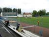 Autóval közelítettük meg a helyszínt, az út során adtam a jólértesült bennfentest, megmondtam honnan érdemes bemenni a kerület-pályára, illetve garantáltam, hogy remek resti tartozik a stadionhoz, sőt még belépőt sem kell fizetni. Természetesen minden információm téves volt. Az általam ajánlott bejárat le volt zárva (500 méteres kerülő várt ránk), ráadásul az autót hátrahagyva bandukoltunk, amikor hatalmas vihar alakult ki. Szerencsére egy furgonos atyafi is hasonlóképpen kereste a bejáratot, bekéredzkedtünk hát az autójába. Ő ugyan jelezte, hogy ülés az nincsen, de ha így is vállaljuk beszállhattunk. Vállaltuk, és ugyan csak 500 métert haladtunk, azt is igen óvatosan, de így is elképesztő mutatvány volt állva stabilizálni magunkat, soha nem lennék rodeós, de legalább néhány vidám percet okoztunk egymásnak ügyetlen kapaszkodásunkkal. Újabb égésemre a büfé is zárva volt, de még a jegyvételt sem úsztuk meg. Nem baj, mindig szívesen veszek jegyet, hiszen a remek kis fecnik is fontos relikviák szerény, de annál fanatikusabb oldalunkon!
