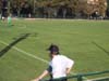 Bár egy budapesti NB II-es meccs aligha tartozik a megyeszurkerek fő célpontjai közé, a gyönyörű idő (amolyan vénasszonyok nyara) mégis a pályára csalogatta a Joe Bácsi – Dzsí – Lóri hármast. A hangulatos pasaréti vámos sportközpontban rögtön megízlelhettük az osztálykülönbséget, a jegyek meccsreszólóan nyomtatottak, különböző színekben, felnött-diák-tiszteletjegy, és bizony kemény négyszáz forintba is került egy biléta. Igaz amikor a pontos kezdésre érkezve is csak a hatos-hetes-nyolcas számú belépőt vehettük meg, élni kezdtünk a gyanúperrel, hogy vagy a kutya sem jött el ma, vagy mindenki bennfentes. Ehhez képest néhány kisgyerek, jónéhány bennfentes öreg és pár barcsi valóban eljött, illetve egy rendkívül csinos hölgy, akiről hamarosan megfejtettük (nem volt túl nehéz), hogy valamelyik játékos barátnője és mivel elsősorban a hazai zöldek fellépéseinél mozgolódott, örömmel konstatáltuk, hogy Pénzügyőr-szív dobog (bizonyára rendkívül formás) mellei alatt. Némileg barátságtalan lépésként a szomszédos teniszpálya hirtelen beindított locsolója hátbakapott minket, de a hidegzuhanyt sztoikus nyugalommal fogadtuk és a meccsre koncentráltunk. Az első félidő elég unalmasra sikeredett, a lelátó egyetlen hang kivételével gyakorlatilag néma csöndben figyelt (mi is csak halkan dörmögtük nívós szakkommentárjainkat). Az egyetlen hang viszont nem tágított, négy-öt panelből („kinek a dolga?”, „támadd meg, vedd el tőle, tök hülye az egészhez”) álló mondandóját szajkózta. Az amúgy egyáltalán nem trágár úriemberre a rendezők rendre rászóltak, először nem értettük miért, azután rájöttünk, hogy szegény rendező nem pusztán a mai meccsen hallgatja meg a kliséket százszor, de az egész idényben. Mindenesetre az úriember elhallgatott, sőt olykor bocsánatot kért: „bocsánat, elragadtattam magamat”, majd hat másodperc múlva folytatta. A szünetben a vendéglátás új szintjeit ismerhettük meg, a fehér ruhás pincérek bámulatosan gyorsan szolgáltak fel, az amúgy remek Pénzügyőr-étterem Söntés feliratú mellékhelyiségében, és egy eddig soha nem látott dorongformájú élelmiszerrel (fasírt-jelleggel) is megismerkedtünk, sőt a bátrabbak (értsd Dzsí) ki is próbálták. A második félidőben azután két Pénzügyőr-találat, egy barcsi válasz izgalmasabbá tette a mérkőzést. Az első gól utáni kisebb hangzavar lehetővé tett egy erőteljesebb Hajrá Pénzügyőr ordítást is az amúgy teljesen rekedt Dzsí részéről (amit néhány másodperces elégedett mosoly követett), illetve Joe bácsi bizonyított igaz rendkívül halkan. Mégpedig azt a bámulatos tulajdonságát, hogy néhány halk szurkolói megjegyzésből és tanácsból is képes volt a meccs végére valamennyi zöld játékost név szerint azonosítani. Lórinak ez a fellépése megyeszurker-premiernek tekinthető, hangoskodással nem is tűnt ki, ám a futballszakértelmét az alapító tagok is elismerően konstatálták. A barcsiak amúgy elég vérszegények voltak, egyedül a penge nyolcas látott a pályán, míg szerencsétlen ötös rendre azon bosszankodott (igaz úgy tűnt, hogy joggal), hogy ő miért nem kap labdát. Mindenesetre az addig rúgott gól nélkül álló pénzügyesek nyertek és a különítmény elégedetten megindult haza. Szerzõ: Dzsí