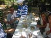 A hosszúra nyúlt megelőző nap után kissé később ébredeztünk. Legnagyobb döbbenetemre a görög tévé női birkózást adott az olimpiáról, egy kínai „kislány” csapkodott egy nemkülönben bájos japán teremtést. Robiékkal megtárgyaltuk, hogy nekik se szólnánk vissza, ha felvetnék, hogy aznap mi mosogassunk el. Fogalmam sem volt, hogy ez is sportág már, jeleztem is a többieknek, hogy amennyiben ilyen nagy az emancipáció, lassan bevezethetnék a férfi ritmikus sportgimnasztikát is. Igazán persze csak akkor döbbentem meg, amikor kiderült, hogy tényleg van ilyen is… Igaz egyelőre nem az olimpián. Kedves barátainkkal találkoztunk utána, az évek óta egy párt alkotó magyar Andival és görög Mihalisszal. Egy remek árnyas vendéglőben ebédeltük és Misi hatalmas görög zászlójával, illetve a mi piros-fehér-zöld lobogóinkkal jelképeztük az olimpiai eszmét, vagyis a népek barátságát. Életem első athéni útján anno őket látogattam meg, így felidéztük a régi szép napokat és a minden vendéglő környékét elárasztó, kajára vágyó, amúgy békés kóbor kutyákat. Tőlük valahogy megtisztították Athént, ám helyette bőven fogyasztó és az anyagcsere másik ágán is igen aktív galambokkal volt dolgunk. Elég vicces volt, ahogy rászálltak evés közben az asztalunkra és az olajos szardíniás tálban csúszkáltak és mindent elpusztítottak. Legközelebb töltött galambot fogok itt rendelni, kiváncsi vagyok azt is megeszik-e… A remek, ouzo-fogyasztással is megspékelt ebédet sajnos annál szomorúbb események követték. Magam, mint elsősorban a női kézilabdáért szorító szurkoló döbbenten figyeltem, ahogy megnyugtató előny után, ki tudtunk kapni az ukránoktól, feladva ezzel a csoportelsőséget és a negyeddöntőben megszerezve így ellenfélnek a franciákat, a „kellemesebbnek” tűnő spanyolok ellenében. Ráadásul egy igencsak gusztustalan honfitársunk még rám is akart sózni egy, nem a magyar fiúk meccsére szóló kézijegyet, úgy kommunikálva, mintha az arra szólna. Szerencsére átláttam a szitán és azzal büntettem a fickót, hogy hosszasan vizsgálgattam a jegyet, mintha gondolkodnék a megvételén. Ha a pénzét nem is, de az idejét legalább kicsit raboltam… Egyetlen (utóbb átmenetinek bizonyuló) örömünk Fazekas Robi aranya volt, amit a kézimeccsen tudtunk meg, ütemes „Fazekas Robi-Fazekas Robi” rigmust kiváltva a nézőkből. Szerzõ: Dzsí