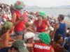 Erre a napra egy ideig azt hittük, hogy full time végigrohanjuk Athént, hiszen négy jegyünk volt, reggel kajak-kenu döntők, utána férfi kézilabda elődöntő, majd vizilabda elődöntő, este női kézi elődöntő, mindez egymástól igen távoli helyszíneken. A hatalmas túra még bele is fért volna a napunkba, de végül a kézis lányok negyeddöntőbeli veresége miatt, kicsit egyszerűsödött a dolgunk. Így sem volt semmi. Felkeltünk fél hatkor, hogy a fél kilences kajak-kezdésre odaérjünk, de ez nem sikerült. Nem jött a busz, nem tudtunk taxit fogni, végül valahogy csak leértünk a metróhoz, majd a metró végállomástól buszoztunk a végtelenségig. Azt persze tudtuk, hogy a kajak-kenu sportcentrum nagyon messze van, de azzal nem számolhattunk az addig megismert görög buszvezető-Schumacherek tükrében, hogy kikapunk egy tízzel cammogó úrvezetőt. Vagy száz busz előzött meg minket az úton, mi pedig egyre elkeseredettebben meredtünk az órára. Nem tudtuk, hogy melyik futamban vannak a magyar esélyesek, így a megérkezés után ordítva rohantunk be a nézőtérre. A jegyszedők jó érzékkel utat engedtek nekünk, így legalább a létező legolcsóbb jegyünkkel, a létező legjobb helyekre jutottunk be. A magyarok közismert leírása, miszerint mögötted jön be a forgóajtón, de előtted megy ki belőle, itt végképp bebizonyosodott. E napon, majd másnap a másik döntőn is, minden magyar (igen sokan voltak) a legjobb szektorban foglalt helyet, amit aligha a jegyvásárlás során biztosítottak. A magyar lányok kajak-négyese ugyan ezüstre jött csak be, ám a fiúk győzelme fantasztikusan boldoggá tette a szurkolókat, hatalmasat ünnepeltünk. Itt úszott el végképp az a folyamatosan hangoztatott előzetes számításom, amellyel örületbe kergettem a haverjaimat. Volt ugyanis egy igen optimista elképzelésem 11 aranyról, ebbe Annus, egy vívó, egy öttusázó, egy lövő, egy férfi vízi, egy női kézi, három női kajak, két fiú kajak tartozott bele. Volt egy momentum, amikor a nagy tervhez képest a pluszokkal, Majorossal, Fazekassal már plusz kettőben voltunk a tervhez képest, ekkor azonban sajnos már biztosan mínuszban. Annus, egy-egy női-férfi kajak-remény és a női kézi már gyakorlatilag kiesett. Persze a többieknek nem vallottam be, hogy már magam is érzem, hogy úszik a terv, inkább a meg nem nevezett titkos favoritjaimmal hergeltem őket. Talán a legnagyobbat akkor égtem, amikor már nagyon el voltunk maradva a tervtől, de én hosszas unszolásra megneveztem Aubéli Ottó birkózót, mint akitől még aranyat várhatunk, mire kiderült, hogy elnéztem a naptárt, ő már előző nap a selejtezőben kiesett. Természetesen a kajakról főleg magyar szurkolók jöttek vissza, így a kajakcentrum és a férfi kézi közötti igen hosszú út is bővelkedett az ünneplésben. A Helleniko Sportcentrumba érve a legnagyobb meglepetésünk az volt, hogy borzasztó sok horvát volt. Szegény délszlávoknak nem sok babér termett az olimpián, de a horvát kézis fiúk sikereire gondolom sokan akár kocsival is megindultak. Más aranyat nem is nyertek az ex-jugók (a szerbek ugye a vizilabdában nem álltak távol ettől...). Talán az egész olimpián az egyetlen meccsünk volt a magyar-horvát, ahol nem volt magyar szurkolói főlény, alul talán itt sem maradtunk, de döntetlenre kihozták. Mármint a szurkolói hangerőt, mert a kézimeccset, azt sajnos nyerték. No de sebaj, a négy közé kerülést hatalmas sikerként fogtuk fel és Mirza Dzombáéktól a tisztes vereséget sem éreztük kudarcnak. Újabb rohanás, mentünk a férfi vízisek elődöntőjére. Amilyen gazember a szurkoló, ha mi vagyunk az esélyesek, már-már természetesnek vettük, az amúgy nagyszerű győzelmet. Egy kedves orosz bácsi a végén kezet fogott velem és gratulált. Az olimpián immár sokadszor mazsolázhattam, mintegy húsz szóra rúgó orosz szókincsemből, és egy széles mosoly és egy „Szpasziva” kíséretében ölelkeztem össze vele. Ezen az estén, bár legalább ezt a meccset megünnepelhettük volna, hamar hazamentünk, hiszen másnap a rossz tapasztalatok miatt még korábbra terveztük a kajak-kenu indulást. Szerzõ: Dzsí