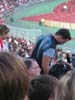 Az Ibuszban anno azt mondta a hölgy, hogy azért nem adott el eddig egy jegyet sem a 27-es szektorba, mert a nagy érdeklődés miatt ezt a szektort utólag nyitották meg. Lehet, hogy így van, mindenesetre Csabit és Csíki Juhászt a stadion másik feléről is simán azonosítottuk, tök egyedül üldögéltek a környéken, ráadásul Bari objektívjének hála azt is azonosítottuk, hogy mikor szurkolnak, mikor isznak sört...