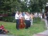 Mivel megyeszurkerek domináns részvételével zajlott, talán nem érdektelen röviden beszámolni Monami és Pötty fergeteges bulijáról, azaz magyarkanizsai lagzijáról. Nekünk ugyanis hatalmas élmény volt. a 94 százalékban magyarok lakta vajdasági településen megrendezett gigant lakodalom. A főesemény egy modern szállodában zajlott, amit a környéken fellelhető gyógysárra alapoztak. Előtte a templomi szertartás Törökkanizsán (itt olyan 40 százalék a magyar, de a többi sem török, inkább szerb) zajlott, a két falu között pedig vagy száz autóból álló megakaraván mozgott. A templom előtt kiszúrtuk, hogy a zenekar elegáns fehér inges cigányzenészei mellett álldogál egy rongyos sárgapolós, mosolygós roma is. Gondoltuk, hogy a csávó vagy nagyon pronyó, vagy ő a legnagyobb király. Persze az utóbbi volt, Schön Ignác, az újvidéki tévé első prímása, a környék legismertebb zenésze. A zenészek amúgy délután 1-től hajnali 6-ig játszottak... Magán a lagzin volt minden, ami kell, vőfély, násznagy, mennyasszonycipő-lopás, majd abból pezsgőzés, menyasszonytánc. Alminak külön tetszett a feladatát rendkívül komolyan vevő vőfély, aki a népies viselet mellett mikroporttal is fel volt szerelkezve. Külön érdekesség volt, hogy bár minden magyar nyelven és a környék magyar hagyományai alapján ment, némi délszláv hangulat is keveredett az ünneplésbe. A helyiek legalábbis nagyon nagy lelkesedéssel táncoltak a szerb slágereknek is. Magyarországon természetesen szintén lehet klasszikus lagzikkal találkozni, de itt úgy tűnt, hogy tényleg az egész közösség nagyon lelkes a mulatós számoktól. A gyomrok is máshogyan vannak kiképezve, mi már a szombati pálinkázásból is csak óvatosan vettük ki a részünket, de a helyiek közül még a velünk egykorú lányok is vallották másnap az ebédnél (ahol végig lehetett enni az előző napi menüt), hogy a nagy bulira jót tesz egy kis pálinka. Mi még javában nyalogattuk előző napi sebeinket, mire a keménymag már újra bőszen pálinkázott. Kicsit volt időnk sétálgatni is. Egy hasonló méretű magyar településsel összevetve, sokkal több a kávézó, a kiülős hely, bankból, boltból is több van, mégha utóbbiból sok láthatóan régen lehúzta a redőnyt. Érdekes volt, hogy rengeteg helyen láttunk áthúzott utcatáblákat, helyette az új utcanévvel. Előbb azt hittem, hogy direkt alázzák szegény Tito Marsallt, hogy ott a neve áthúzva, de aztán megtudtuk, hogy a törvény szerint a megváltoztatott utcaneveknél a régi táblának is kint kell lenni még egy évig. Amúgy valóban sokat cseréltek, elsősorban a régi Jugoszláviára utaló táblákat, különös tekintettel a horvátokra emlékeztetőt.
